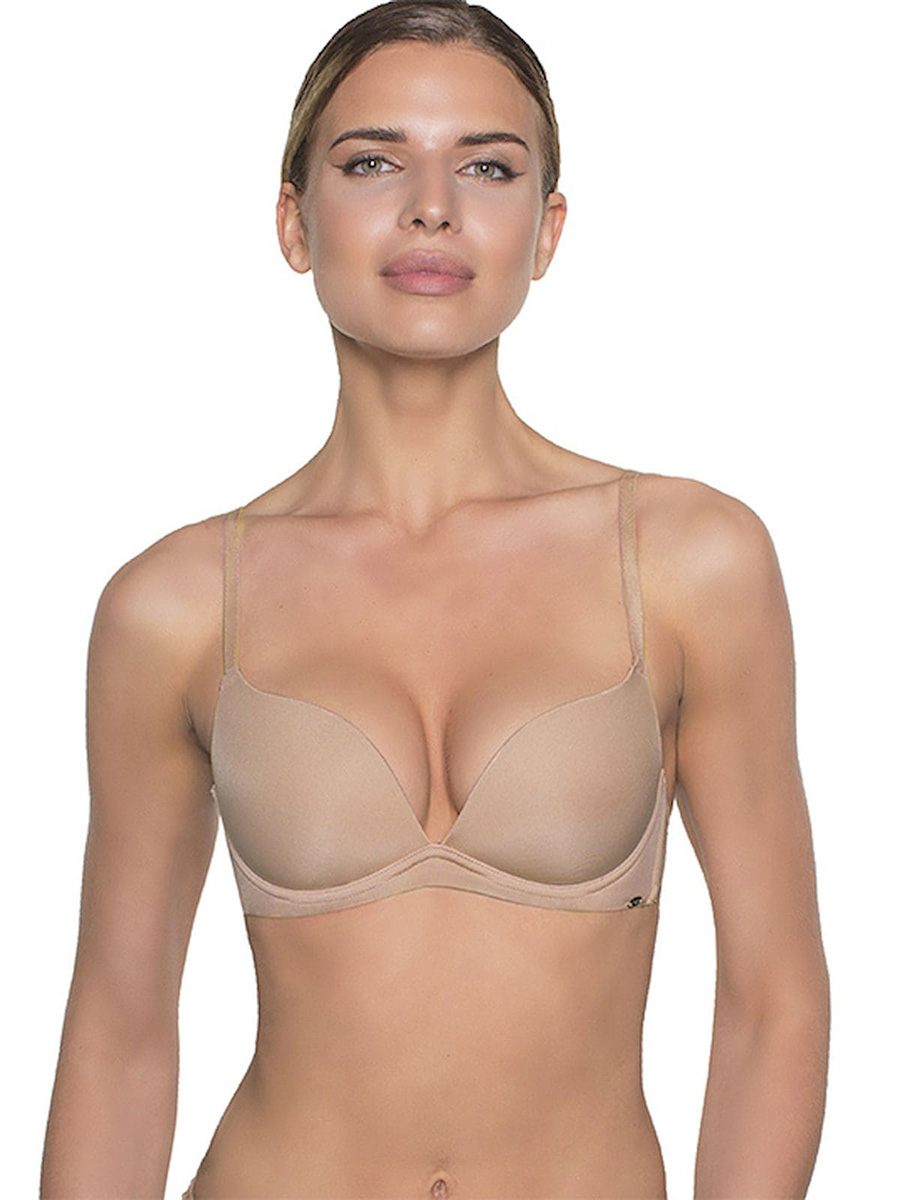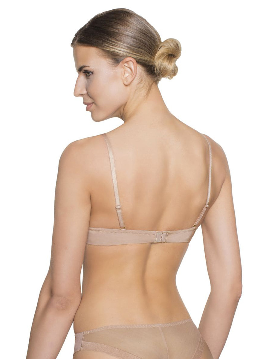Бюстгальтер-балконет с градуированной чашкой (визуально добавляет +1 размер), без косточек. Регулируемые бретели. Застежка в два ряда на три позиции. Выполнен из микрофибры. Коллекция "Milla"