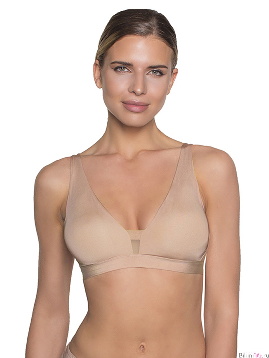 Бралетт с двухслойными мягкими чашками без костей. Съемные формованные вкладыши. Регулируемые бретельки. Застежка в два ряда на три позиции. Выполнен из микрофибры. Коллекция "Milla".