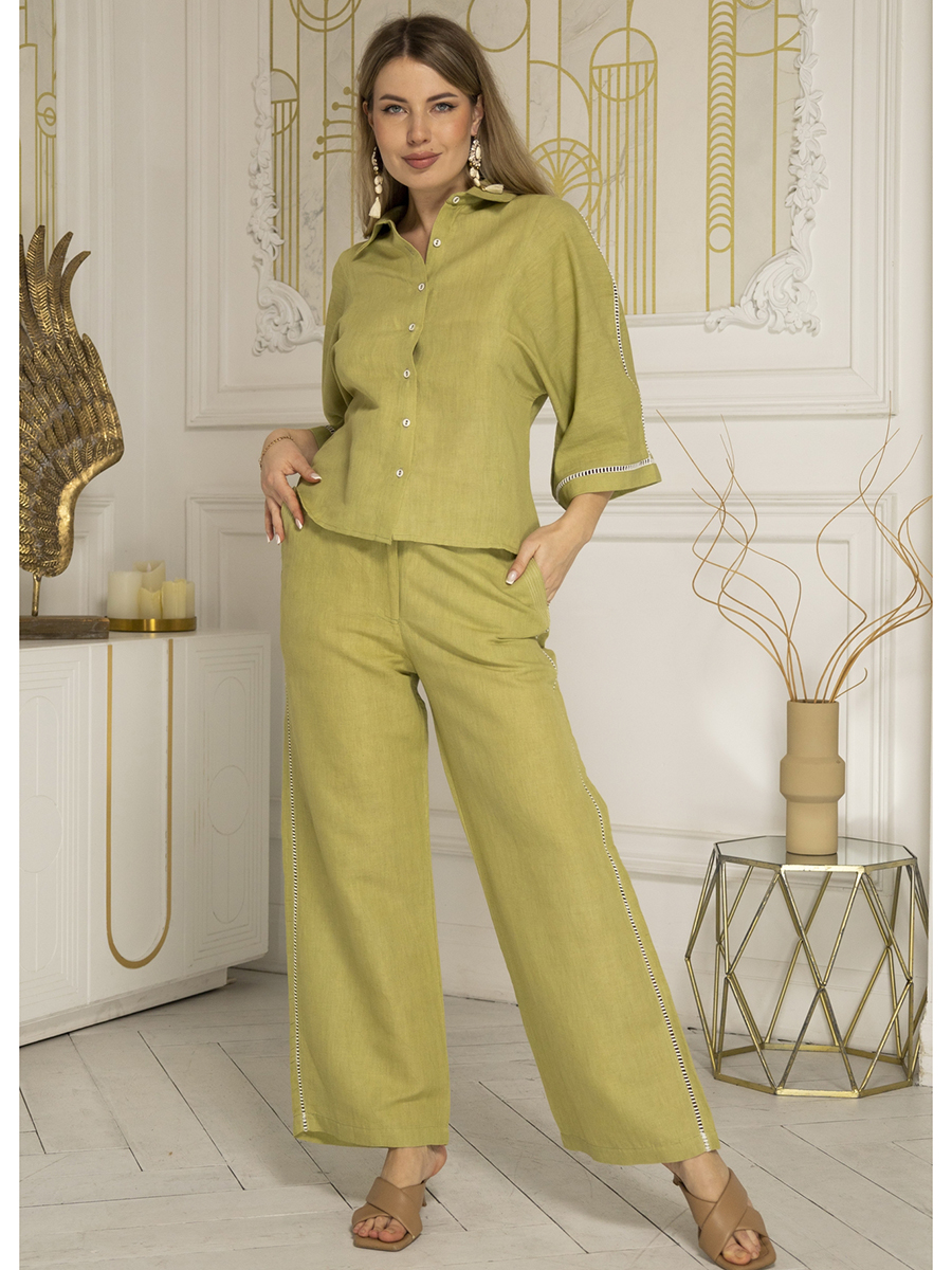 Брюки из смесовой льняной ткани. Модель свободного кроя и слегка расширена к низу от бедра, пояс отрезной