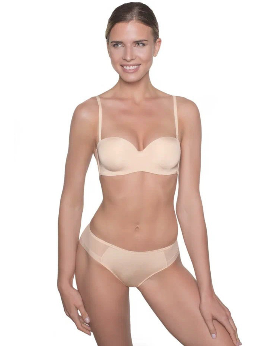 Бюстгальтер анжелика, "фашия" с градуированной чашкой, на косточках. Средний размер пуш-ап. Съемные бретели, широкие резинки на спинке усилены силиконом, что позволяет носить модель без бретелей. Застежка в два ряда на три позиции. Выполнен из микрофибры. Коллекция "Milla"