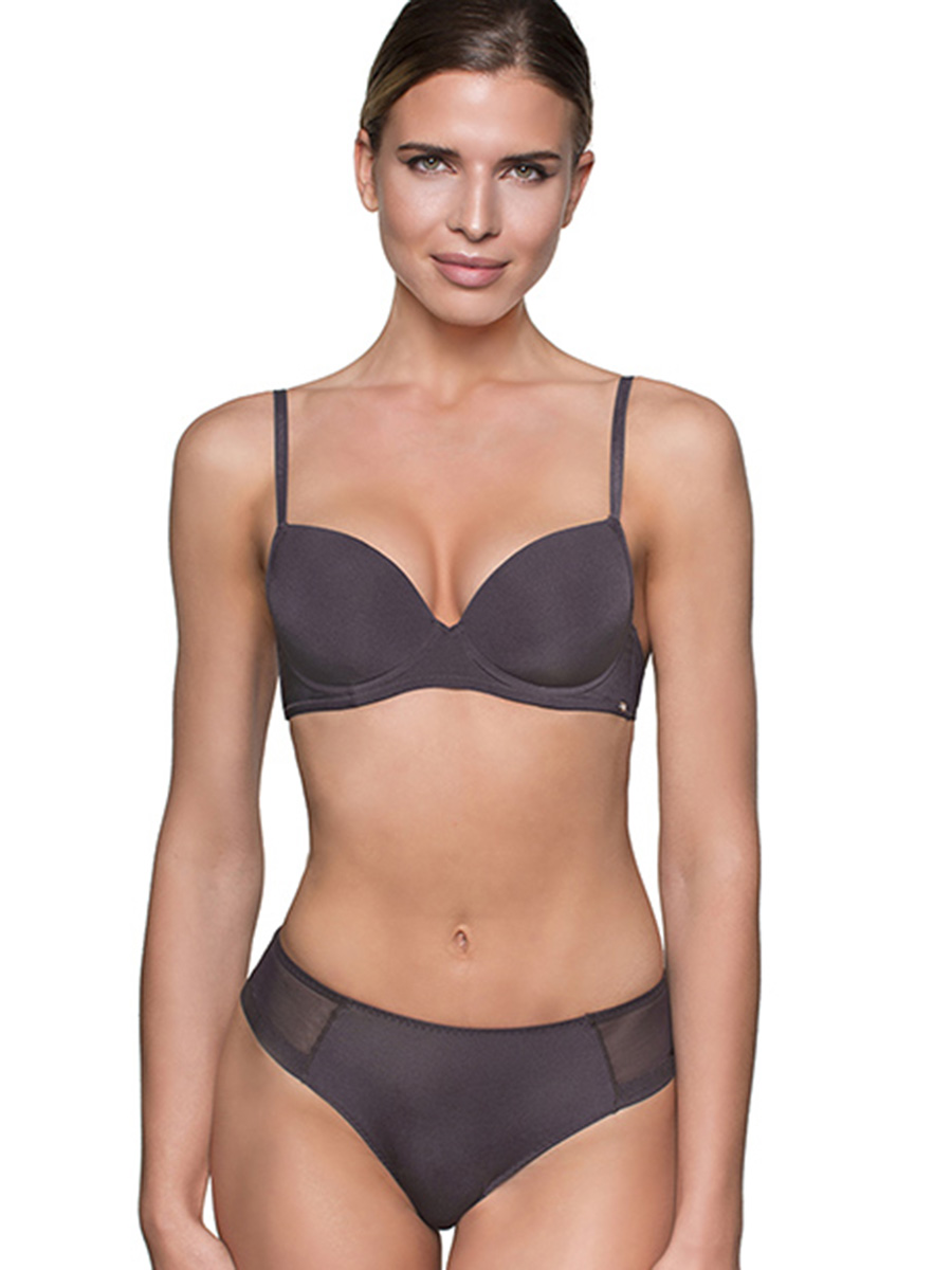 Бюстгальтер-балконет с формованной чашкой (без пуш-ап), на косточках. Несъемные, регулируемые бретели. Застежка в два ряда на три позиции. Выполнен из микрофибры и сетки. Коллекция "Milla" Серия Milla пересекается и взаимозаменяется по цветам с серией Margo.