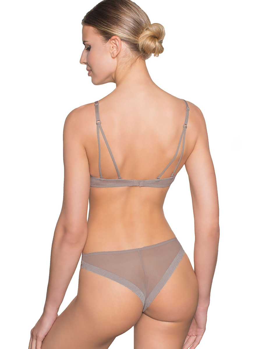 Бюстгальтер пуш-ап с градуированной чашкой, на косточках. Средний размер пуш-ап. Два варианта моделирования спинки. Застежка в один ряд на три позиции. Выполнен из микрофибры и сетки. Коллекция "Milla"