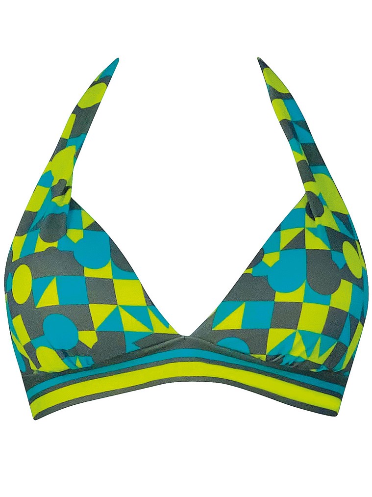 Отдельный бюст-халтер с глубоким вырезом и изящной линией декольте. Фигурные чашки с мягкими корректорами на широком эластичном поясе и завязками на шее и спине. Модель выполнена из эластичной ткани с ярким геометрическим принтом.Трусы в комплект купальника не входят и приобретаются отдельно; лиф компонуется с трусами в строке АКСЕССУАРЫ строго в соответствии с размером