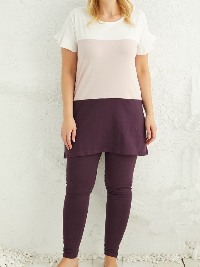 Пижама из хлопковой ткани, верх с округлым вырезом, низ - длинные брюки-легинцы.