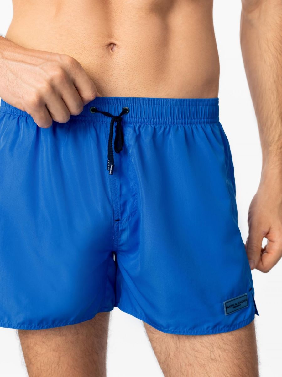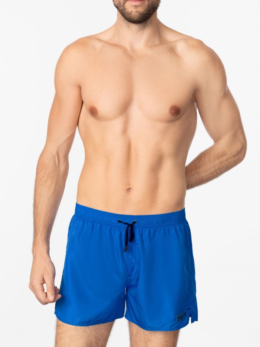 Мини-шорты из мягкой быстросохнущей ткани. Один задний карман. Пояс на резинке. Мягкая вшитая сетчатая подкладка. Контрастный черный шнурок.
