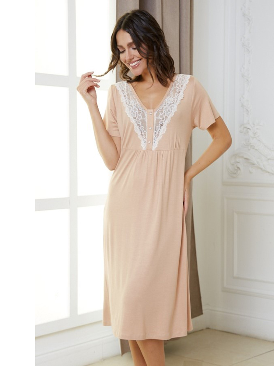 Ночная сорочка из вискозной ткани, ворот на пуговицах и украшен кружевом