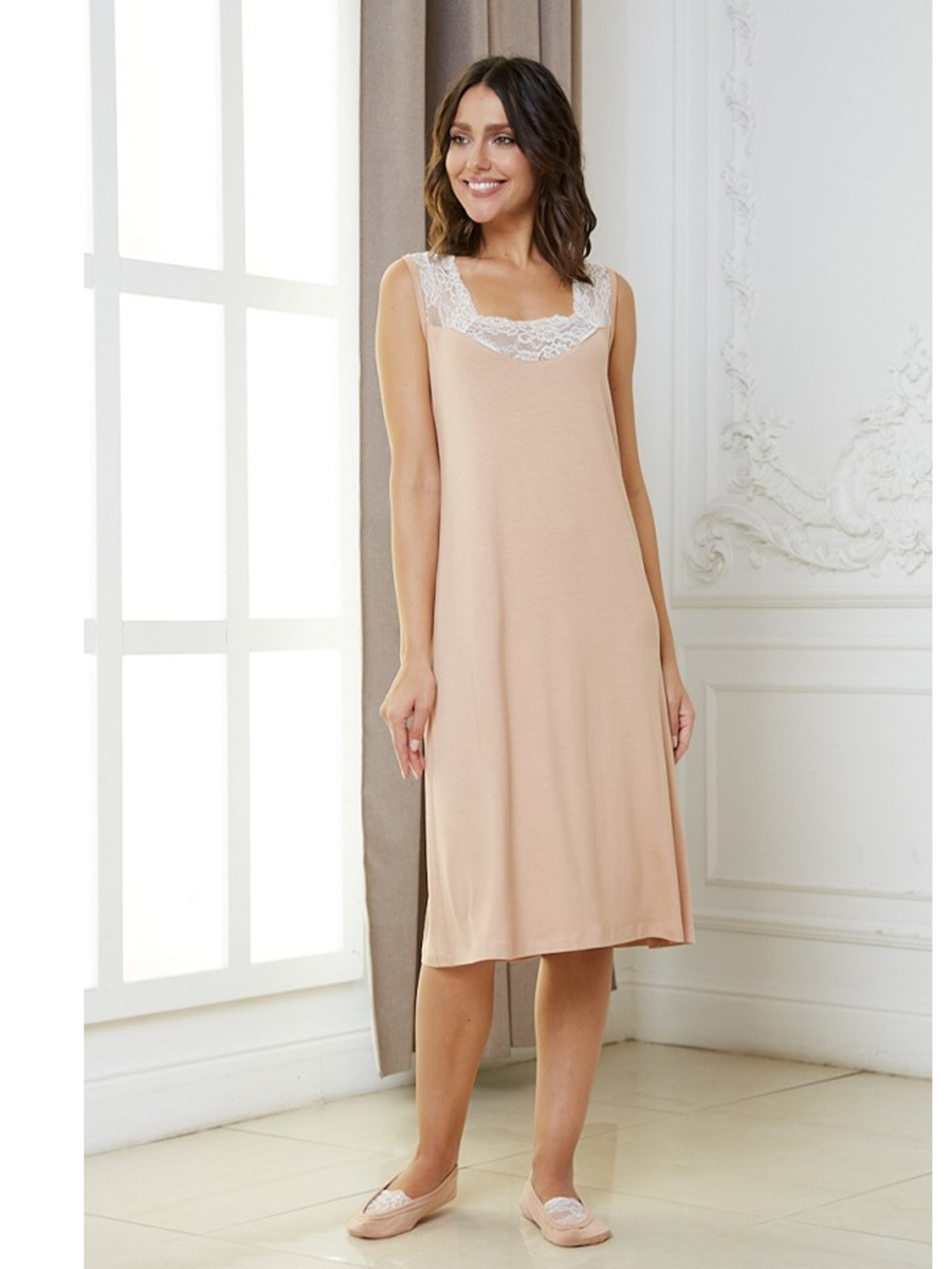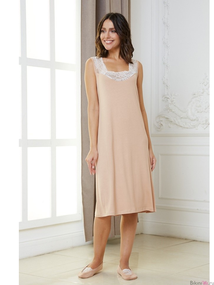 Ночная сорочка из вискозной ткани, ворот украшен кружевом