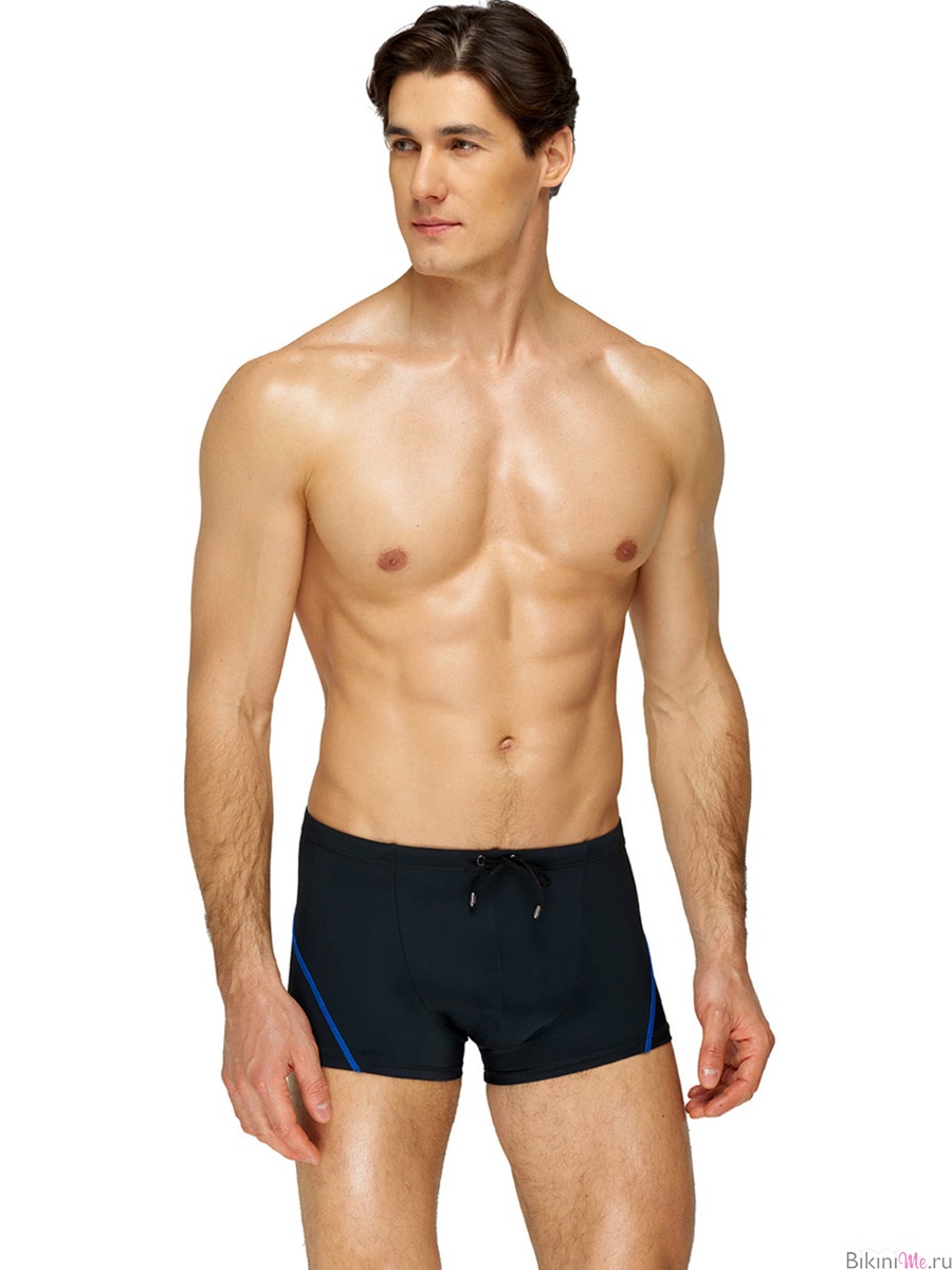 Мужские плавки-шорты со средней линией талии. Контрастная отделочная строчка. Пояс на резинке с регулируемой шнуровкой. Внутри подкладка из мягкой ткани.