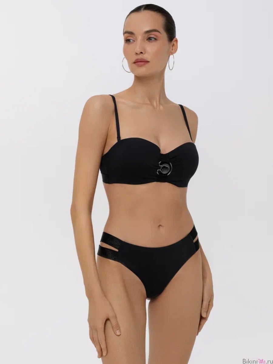 Верх купальника с формованными чашками «бандо» на косточках. По центру аксессуар. Съемныерегулируемые бретели. На спине застежка.