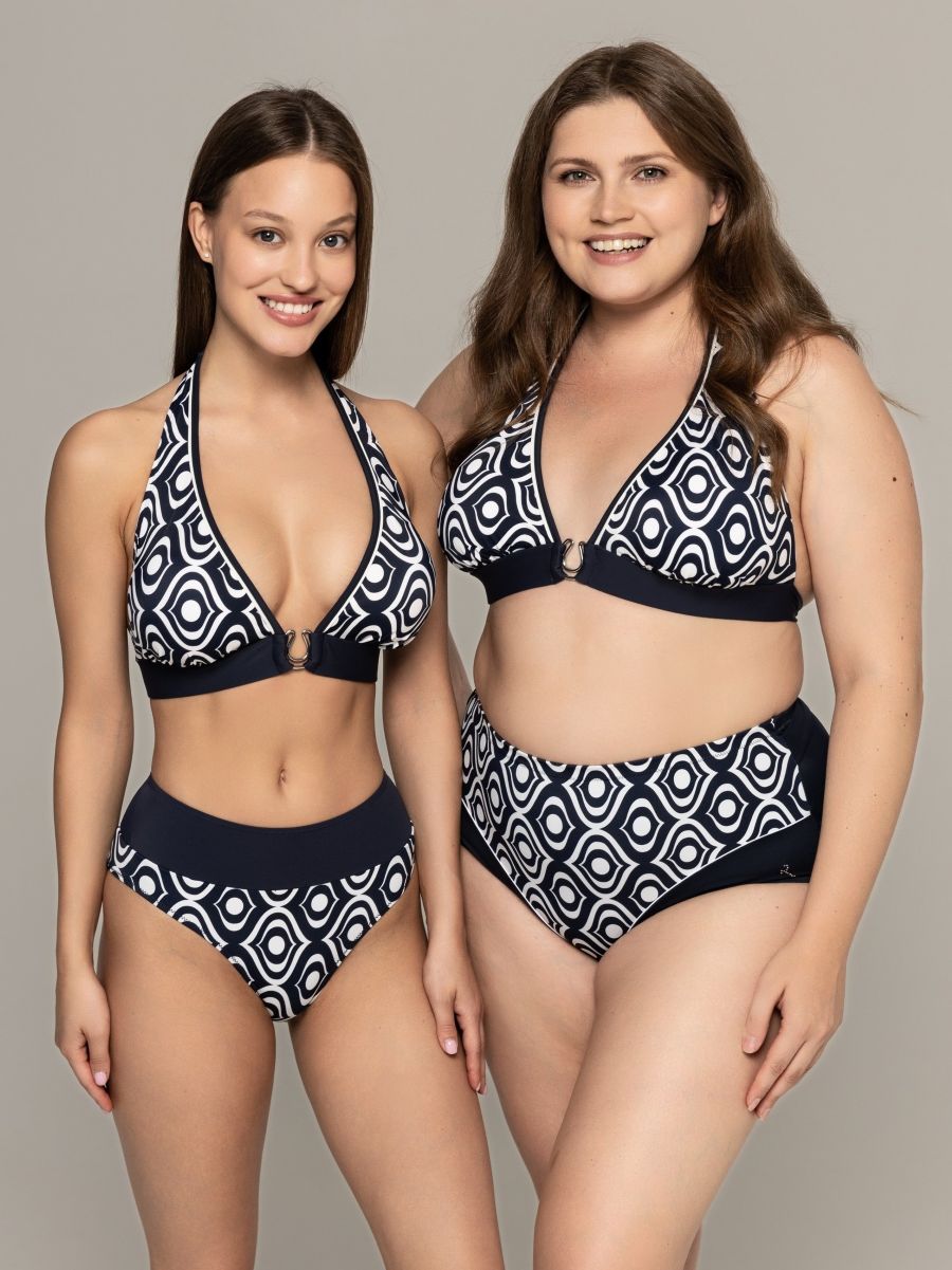 Лиф бикини RIPIDO - мягкая чашка без каркасов с тонкими съемными поролоновыми вкладышами. Фиксируется завязками на спине и шее. Лиф декорирован металлической вставкой, которая красиво оформляет линию декольте, а вытянутая треугольная форма обеспечивает плотное прилегание и надежную поддержку груди. Плавки RIPIDO на средней посадке. Продублированы подкладкой.