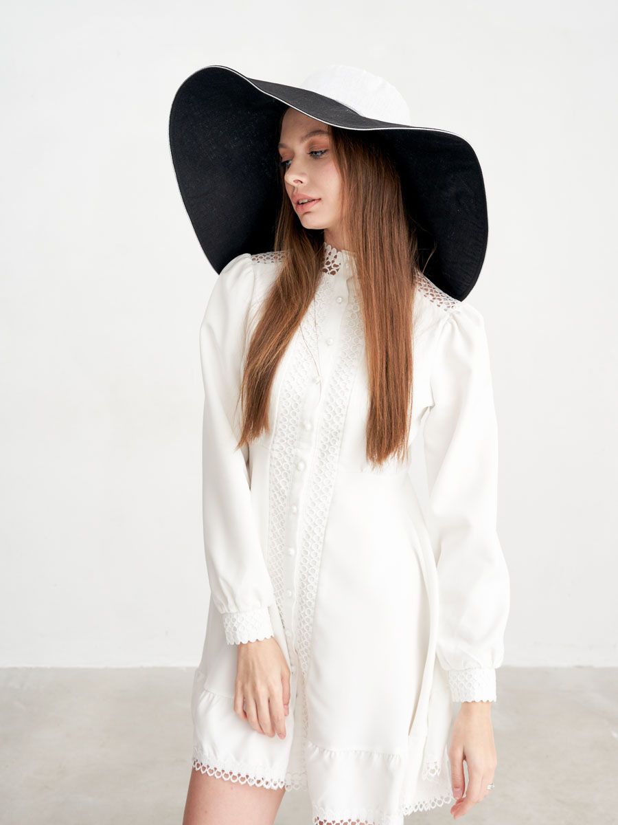 Шляпа изо льна с широкими ассиметричными полями, которые защищают плечи и спину от солнца, украшена кристаллами