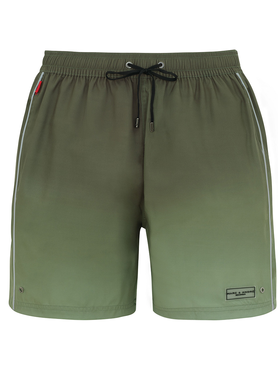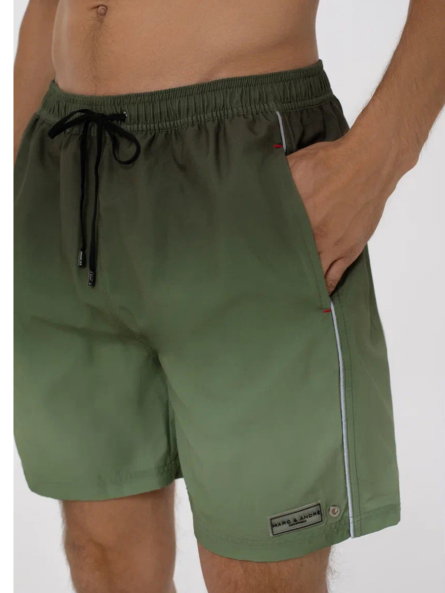Мужские шорты свободного кроя. Выполнены из легкой быстросохнущей ткани. Эффект омбре. Длина до середины бедра, на задней детали карман на молнии. Боковые карманы. Пояс на резинке и шнуровке. Внутри вставка из мягкой сетки.
