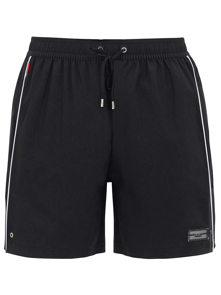 Мужские шорты свободного кроя. Выполнены из легкой быстросохнущей ткани. Длина до середины бедра, на задней детали карман на молнии. Боковые карманы. Пояс на резинке и шнуровке. Внутри вставка из мягкой сетки.