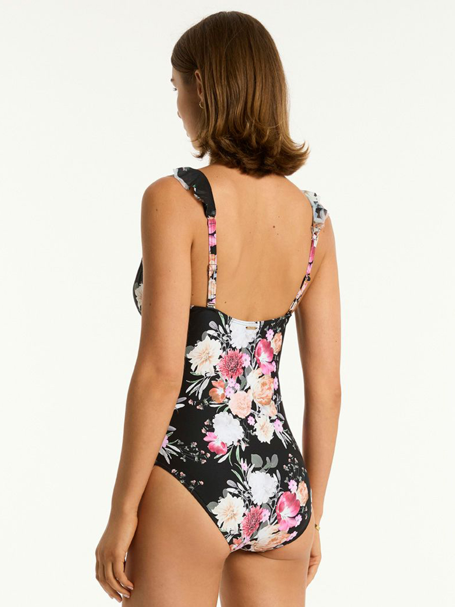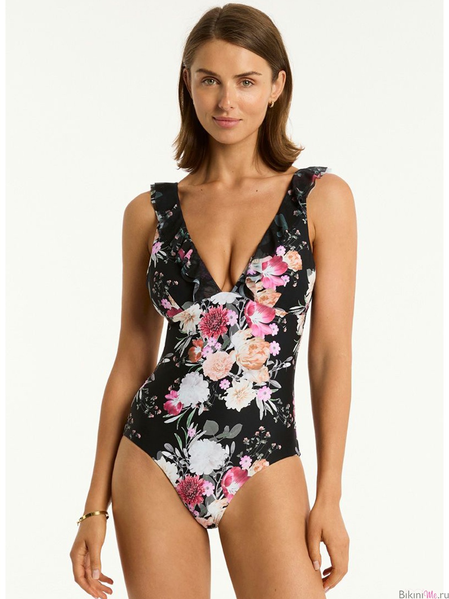 Слитный купальник с эффектом коррекции из ткани с цветочным принтом. Верх - съемная мягкая чашка, регулируемые бретели