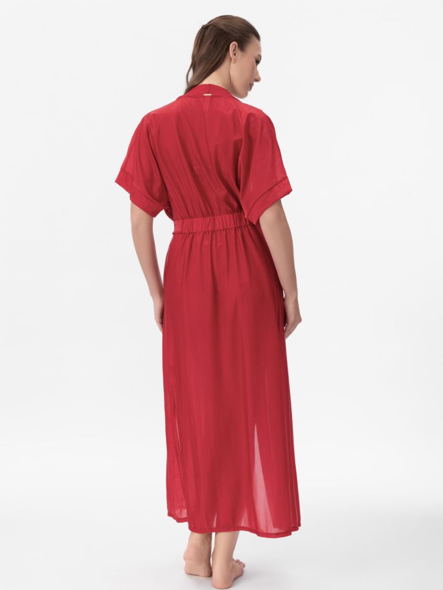 Воздушная туника макси из сетки-меш с деликатными вкраплениями тонкой металлизированной нити создаёт лёгкий мерцающий эффект и изысканный силуэт. Боковые разрезы добавляют свободу движений и динамику образу. Несъёмный пояс подчёркивает талию и создаёт аккуратную посадку.