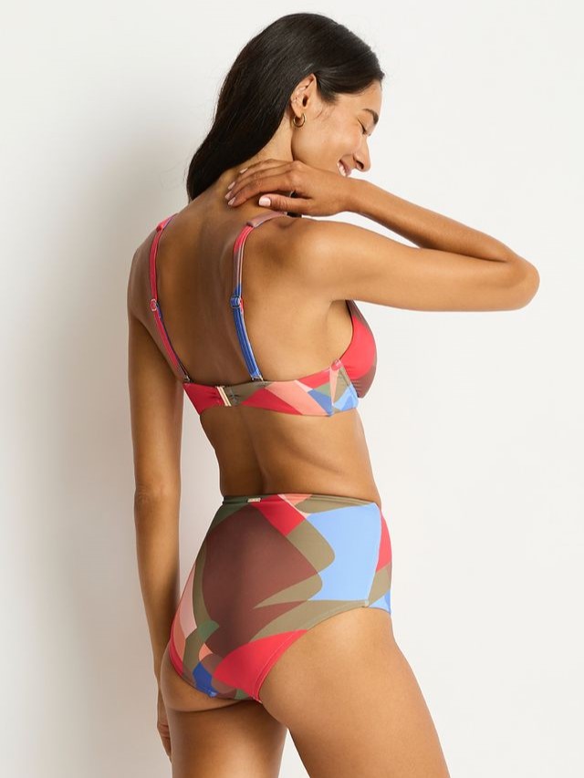 Яркий бюст раздельного купальника с треугольной чашкой и насыщенным принтом - воплощение лета и свободы.
