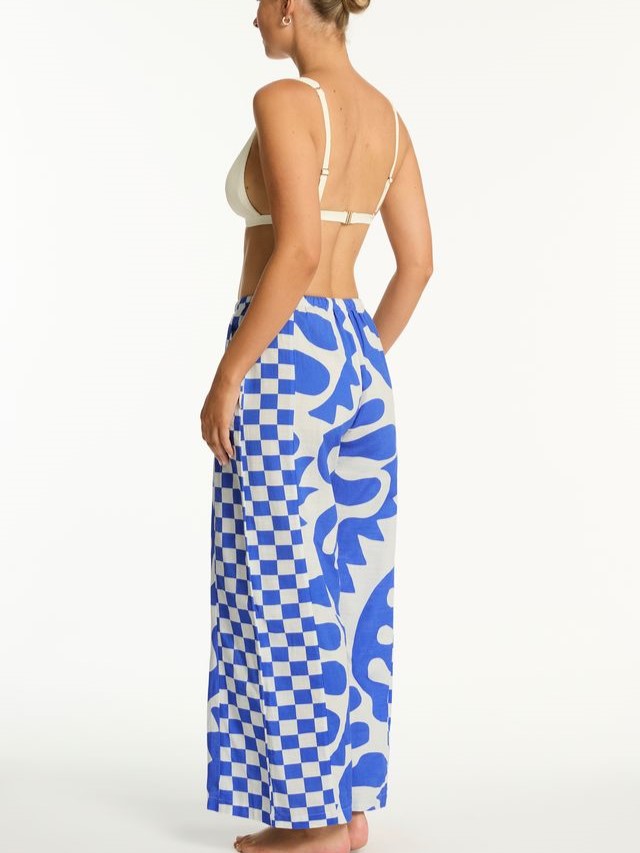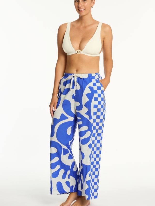 Брюки с принтом, который поддерживает серию купальников, выполнены из 100% высококачественного хлопка, который отличается мягкостью, воздухопроницаемостью и приятен к телу. Прямой, свободный крой обеспечивает максимальный комфорт и свободу движений. Высокая посадка визуально удлиняет ноги и подчеркивает талию. Эластичная резинка на поясе обеспечивает идеальную посадку и комфорт при движении. Брюки имеют практичные карманы по бокам.