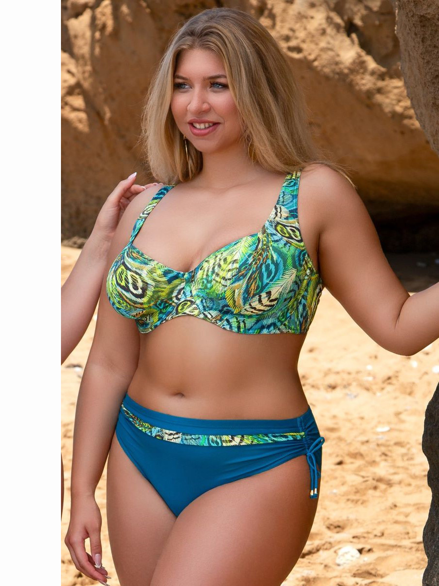 Раздельный купальник с мягкой чашкой на косточках и с боковым подкроем, который имеет плавный переход к бретелям. Это визуально корректирует форму груди и создаёт эффектный силуэт.
