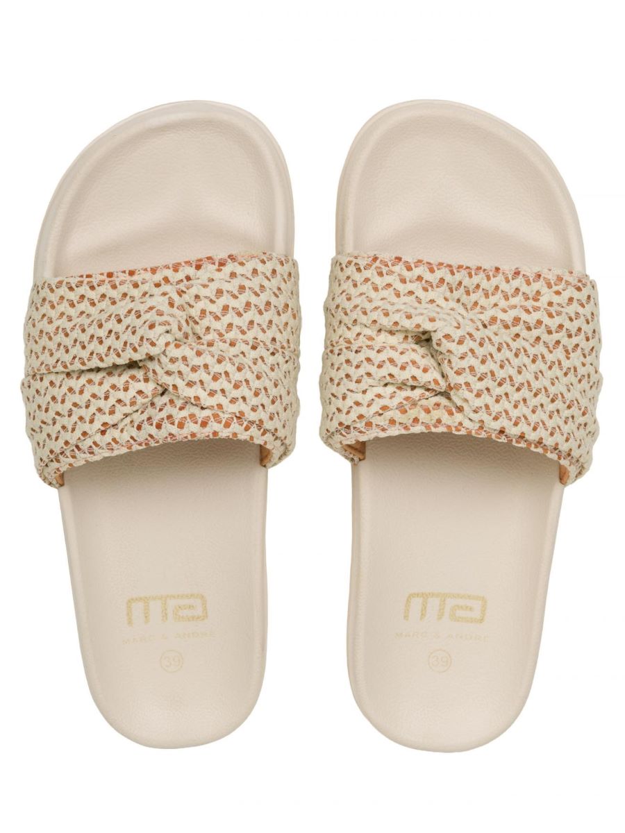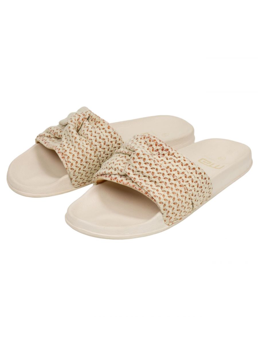 Женские шлепанцы на платформе с декоративным перекрутом — сочетание стиля и комфорта! Элегантная модель выполнена в светлом оттенке. Декоративный перекрут придаёт обуви изысканность, а массивная платформа обеспечивает удобство при ходьбе.