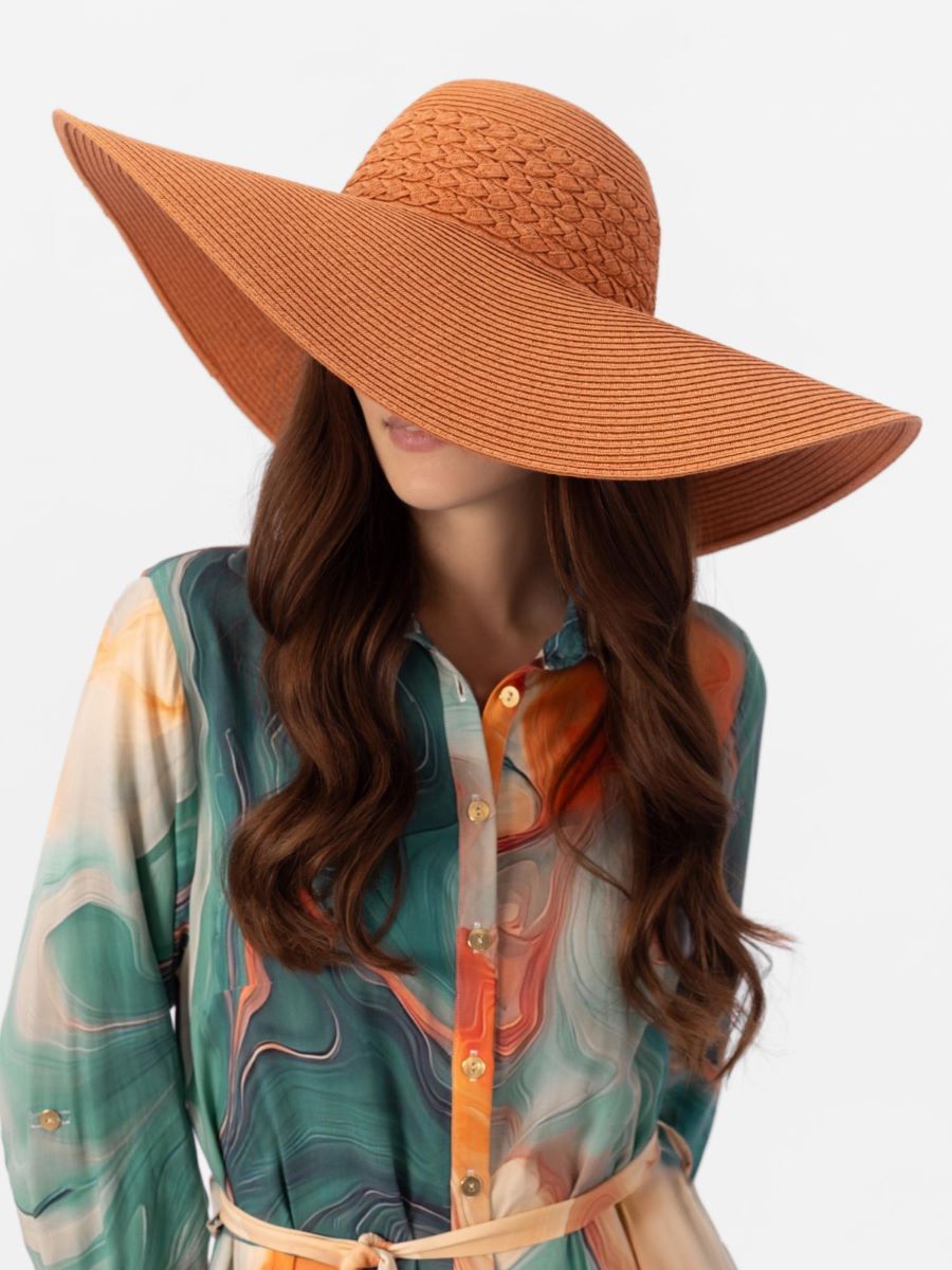 Элегантная шляпа с широкими полями — воплощение летнего стиля и комфорта. Тщательно продуманная конструкция и высококачественный плетёный материал обеспечивают не только эстетическое удовольствие, но и практическую пользу: широкие поля надёжно защищают от солнечных лучей, а тёплый терракотовый оттенок добавит изысканности любому образу.