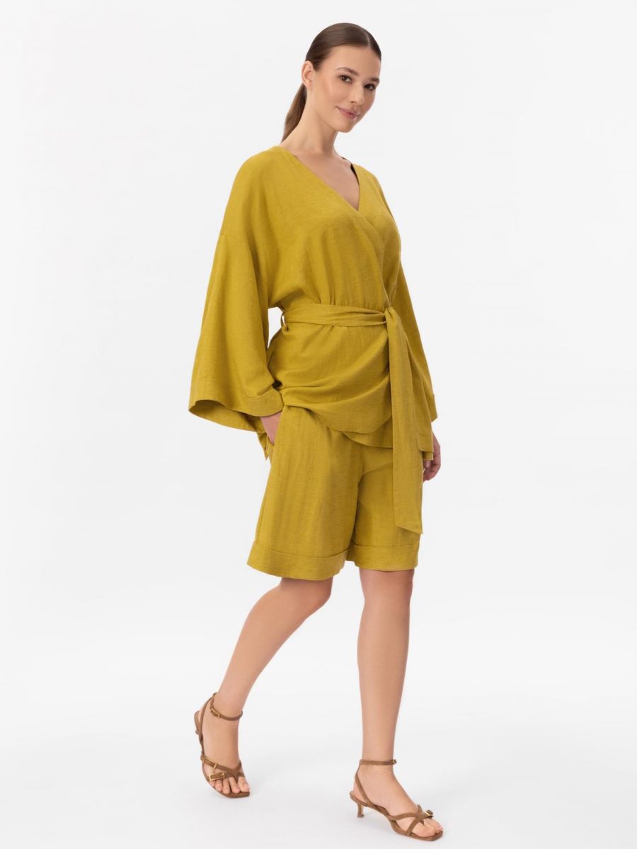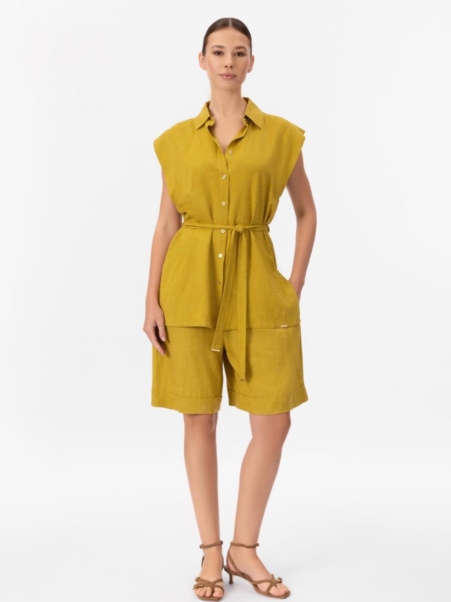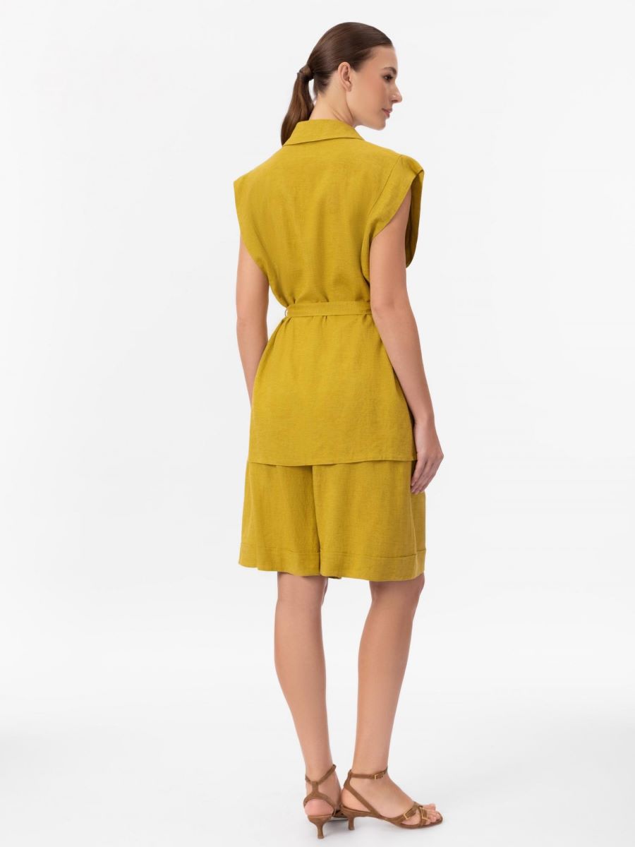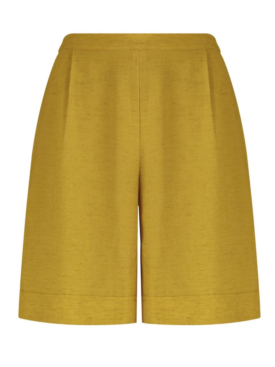 Лёгкие шорты-бермуды из смеси льна и вискозы с завышенной талией создают элегантный и современный силуэт. Боковые карманы добавляют практичности, а свободный крой обеспечивает комфорт и лёгкость в жаркую погоду.