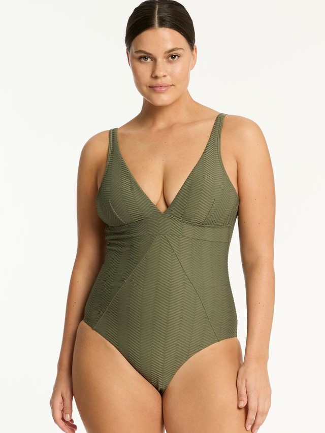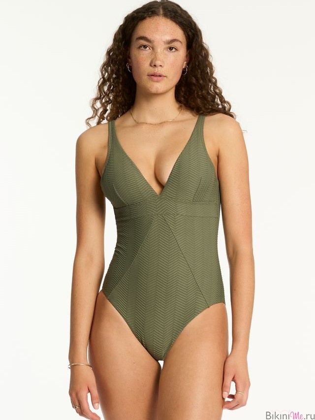 Слитный купальник Sea Level из фактурной ткани с эффектом скульптурирования и круговой утяжки для создания идеального силуэта. Мягкая чашка с поддержкой, регулируемые бретели