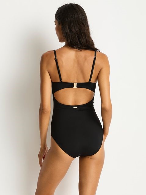 Элегантный чёрный слитный купальник-бандо с мягким поролоновым корректором обеспечивает естественную форму и комфортную поддержку для любого бюста. Перфорация по верхнему краю добавляет изысканный декоративный акцент, улучшая вентиляцию и предотвращая скольжение.
