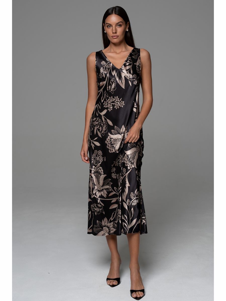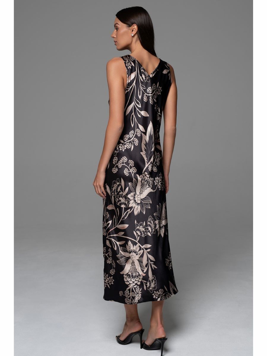 Классическая длинная сорочка Mia-Amore с вертикальными рельефами и широкими бретелями выполнена из принтованного смесового шёлка.