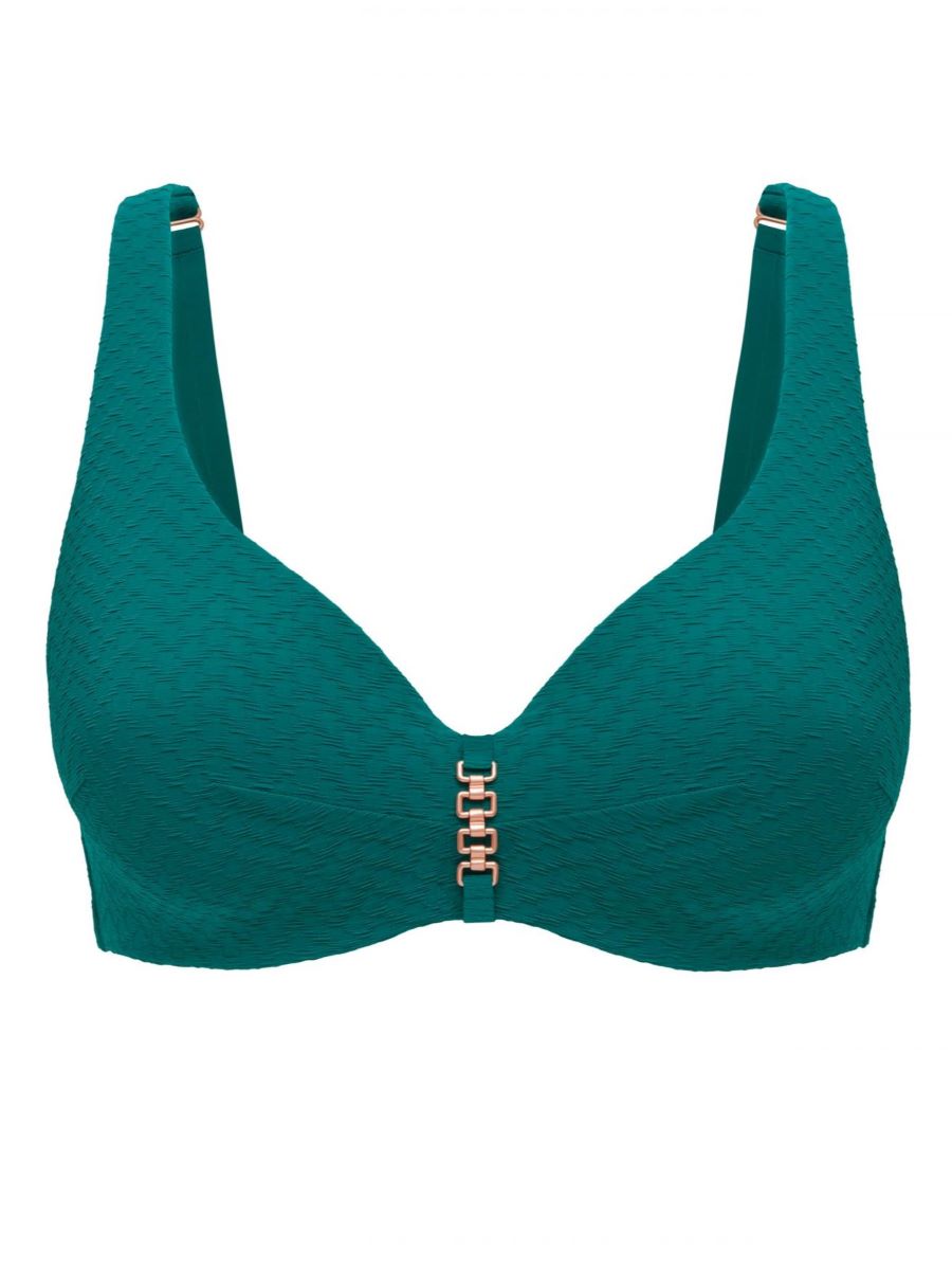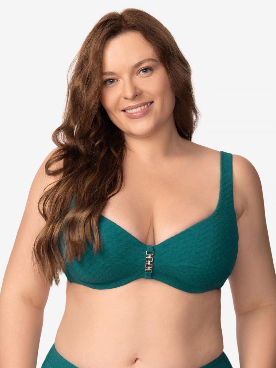 Формованная чашка на каркасной поддержке подчёркивает грудь и создаёт соблазнительный силуэт. Углублённая линия декольте. Между чашек расположен изящный аксессуар, добавляющий утончённости и шарма.