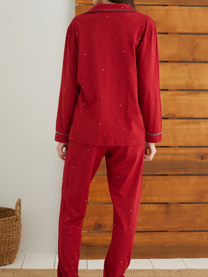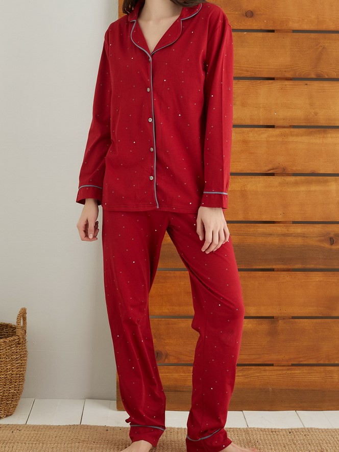 Пижама из хлопковой ткани,на пуговицах с отложным воротником, длинные брюки на резинке.