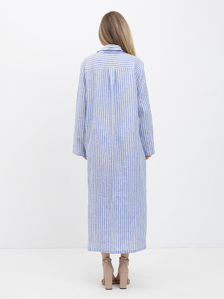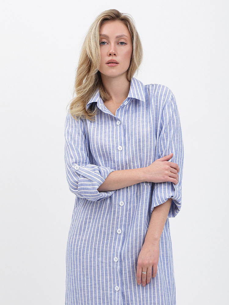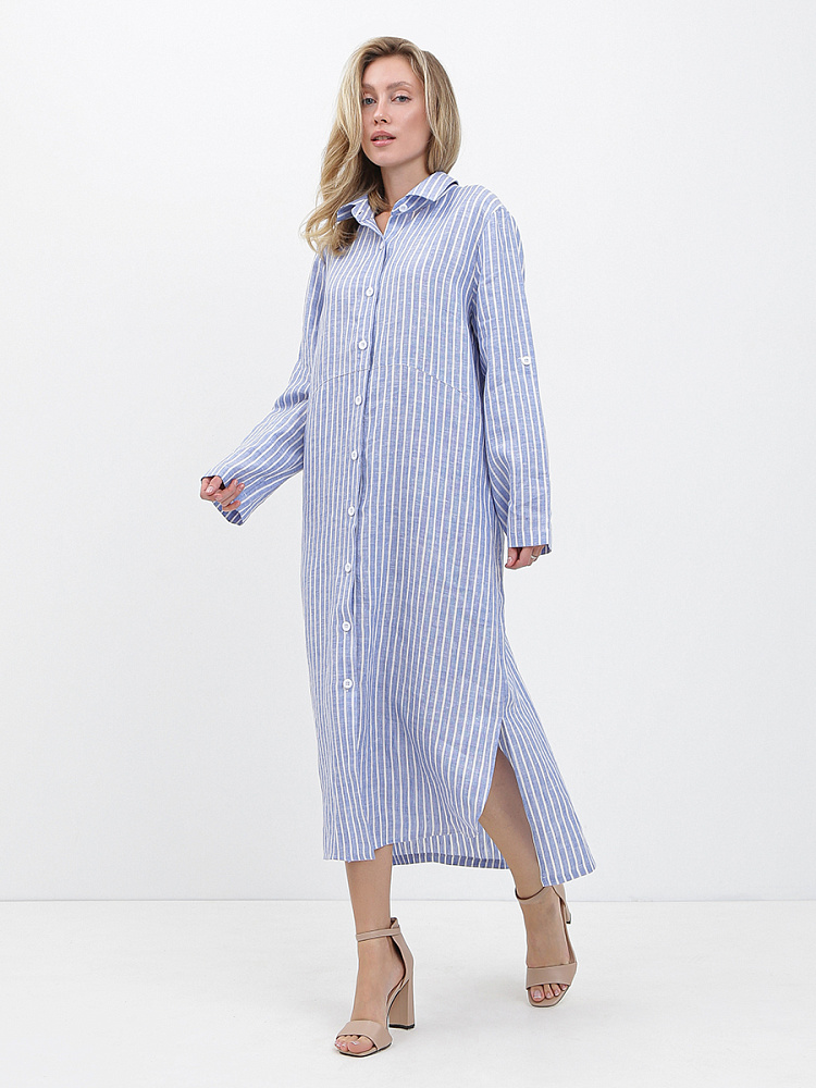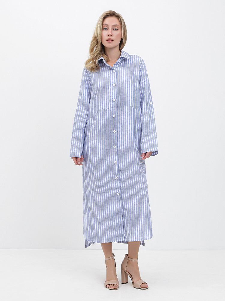 Летнее женское платье итальянского бренда FABRETTI выполнено из высококачественного льна. Удобное, легкое, приятное к телу. Свободный крой обеспечивает максимальный комфорт и свободу движений, а длина миди подчеркивает элегантность и женственность. Платье застегивается на пуговицы спереди, а длинные рукава обеспечивают комфорт и свободу движений. Рукава можно закатать повыше с помощью специального хлястика и пуговицы. Классический воротник добавляет образу женственности и утонченности.