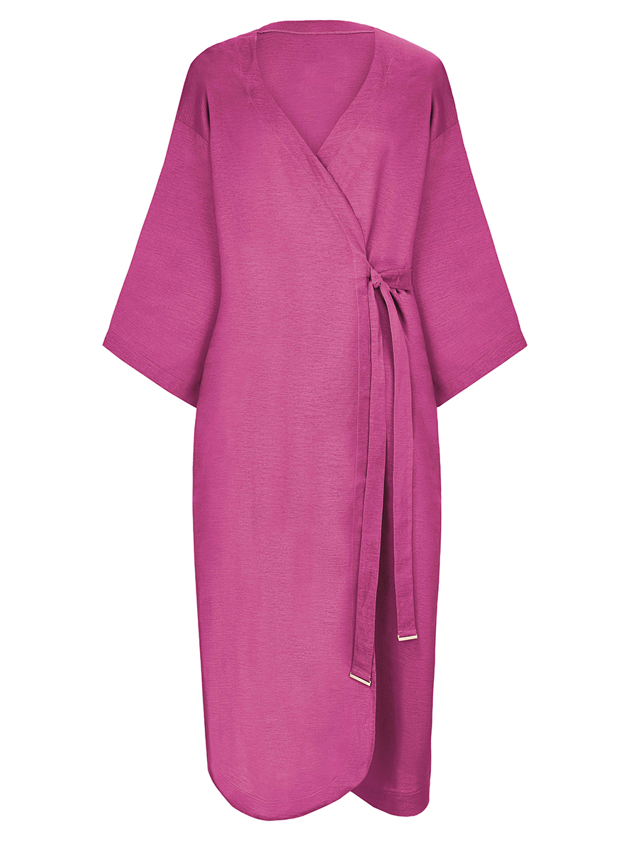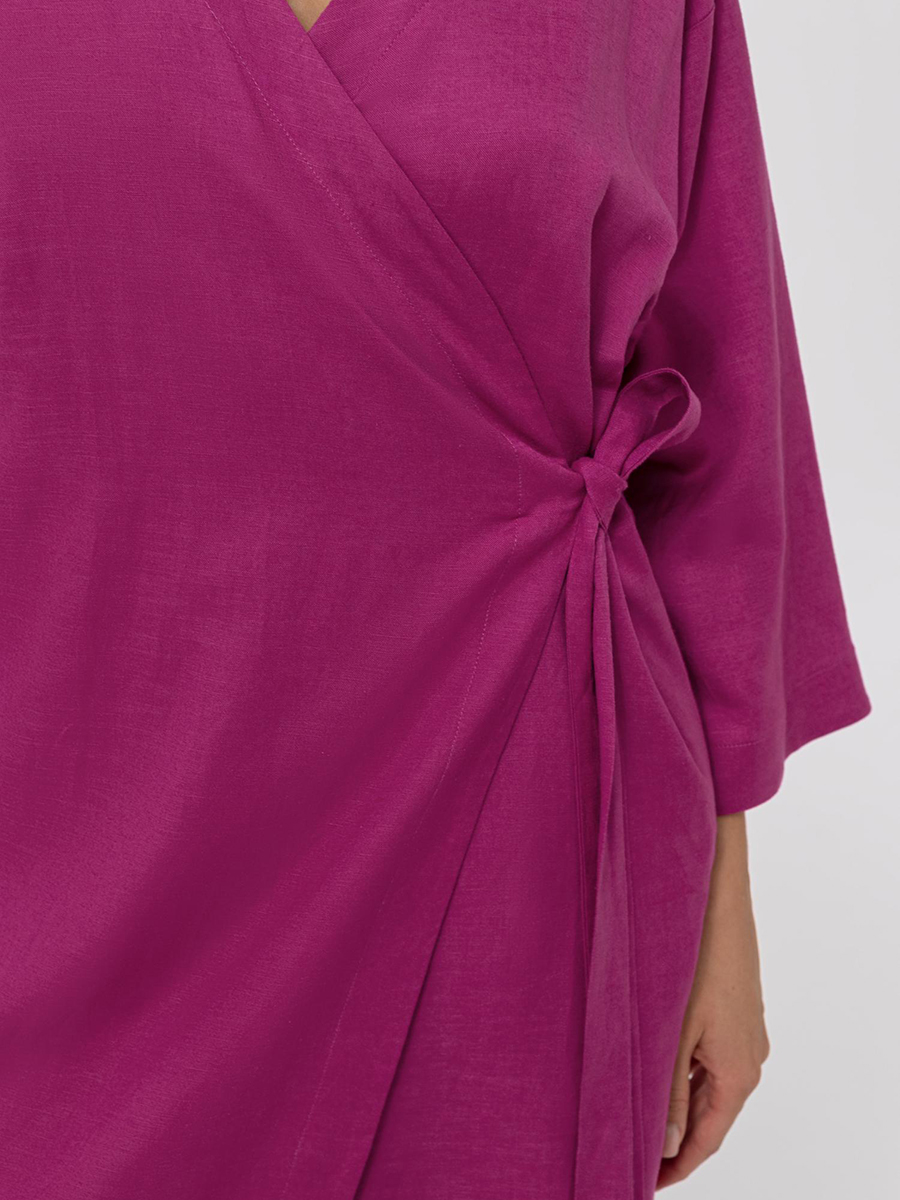 Кимоно свободного кроя из льна и вискозы на запах. Боковые карманы. Втачной рукав 3/4. Длина ниже уровня колен.
