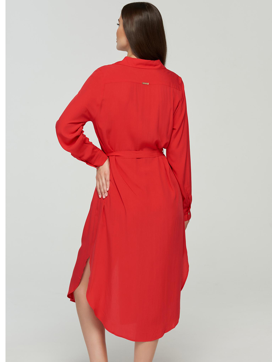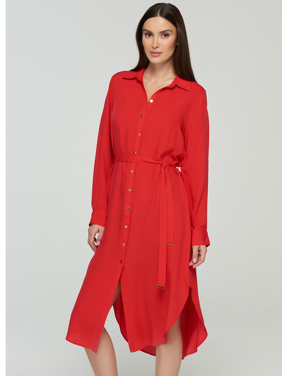 Платье-рубашка макси свободного прямого кроя на пуговицах. Длина ниже уровня колен. Ворот отложной. Декоративный пояс. Длина рукава регулируется патой с застежкой.