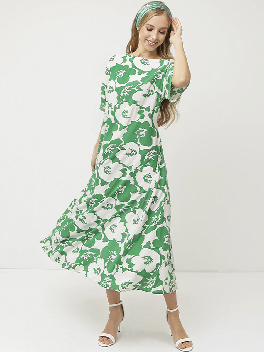 Летнее женское платье итальянского бренда FABRETTI выполнено из высококачественной вискозы. Удобное, легкое, приятное к телу. Яркий флористичный принт — стильный и актуальный тренд. Платье длины миди имеет круглый вырез и рукава три четверти. Платье имеет свободный крой, что скрывает недостатки фигуры и обеспечивает свободу движений.