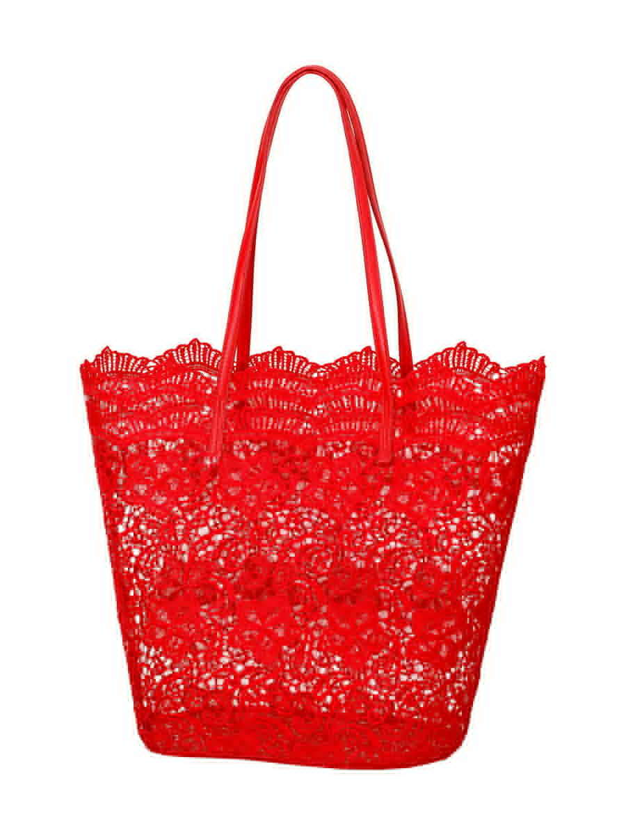 Элегантная пляжная сумка с вышитыми мотивами. Дополнительная съемная сумка из непрозрачной ткани внутри.