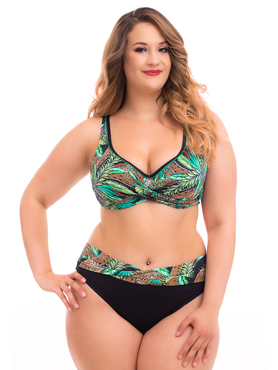 Купальник раздельный с лифом в виде плотной поролоновой чашки на кости и боковой костью, бретели широкие и регулируются, застежка на спине, плавки широкие.