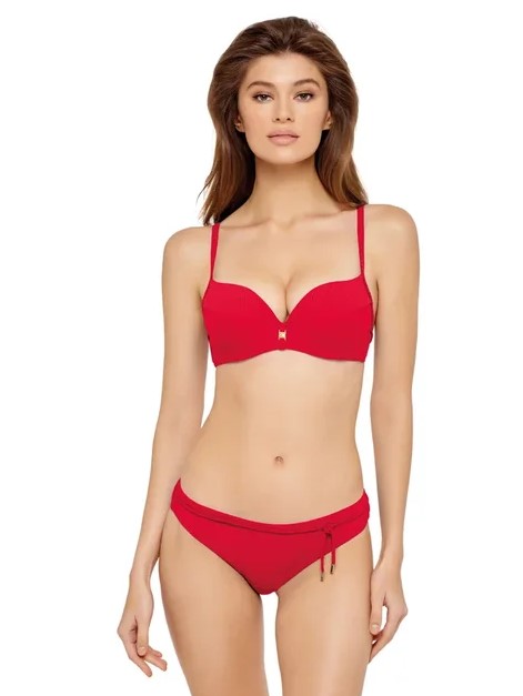 Формованная чашка на каркасной поддержке со съемными корректорами «пуш-ап». Плавки-брифы со средней линией талии. Декоративный плетенный пояс.