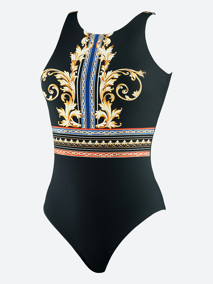 Элегантный слитный купальник с формованной поролоновой чашкой и стильным принтом по передней детали