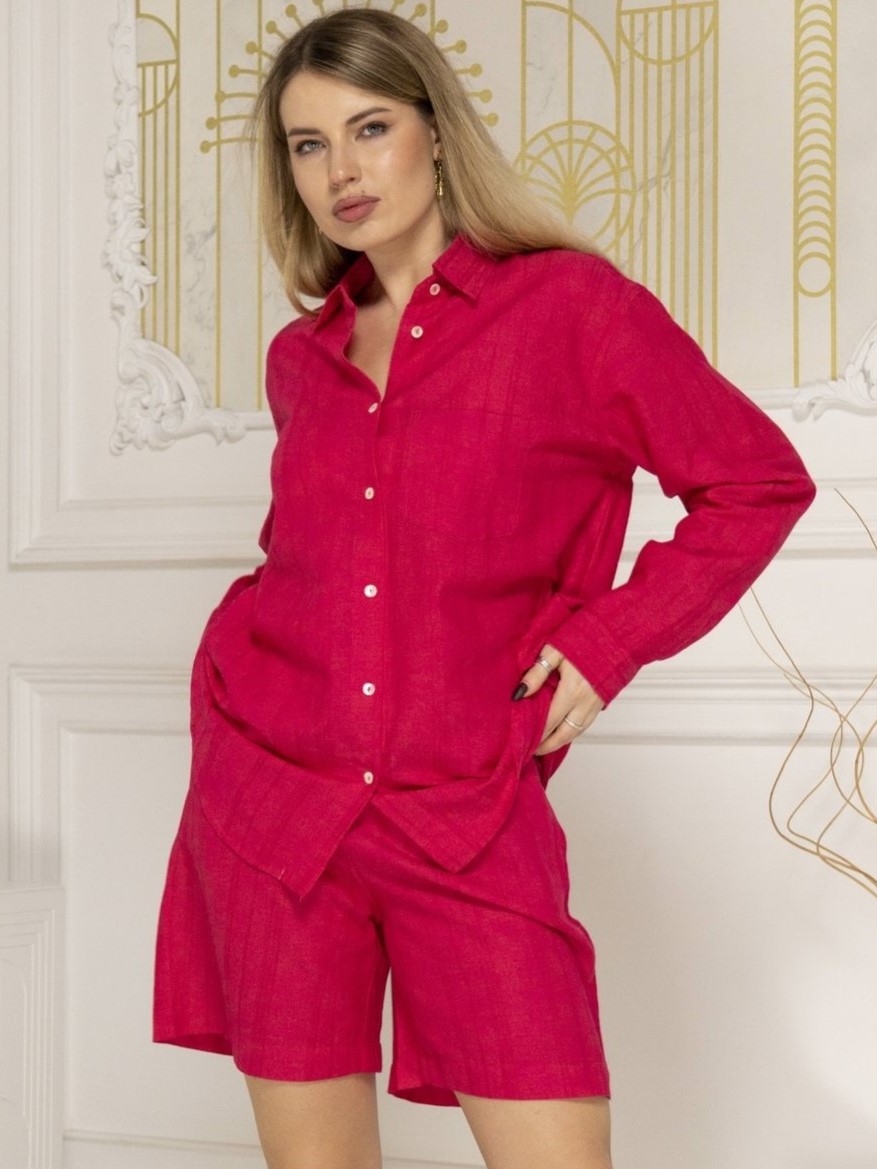Блуза Naemy Beach — легкая пляжная рубашка из натуральных материалов для комфортного отдыха. Однотонная модель в цвете фуксия идеально дополнит купальник или брюки.