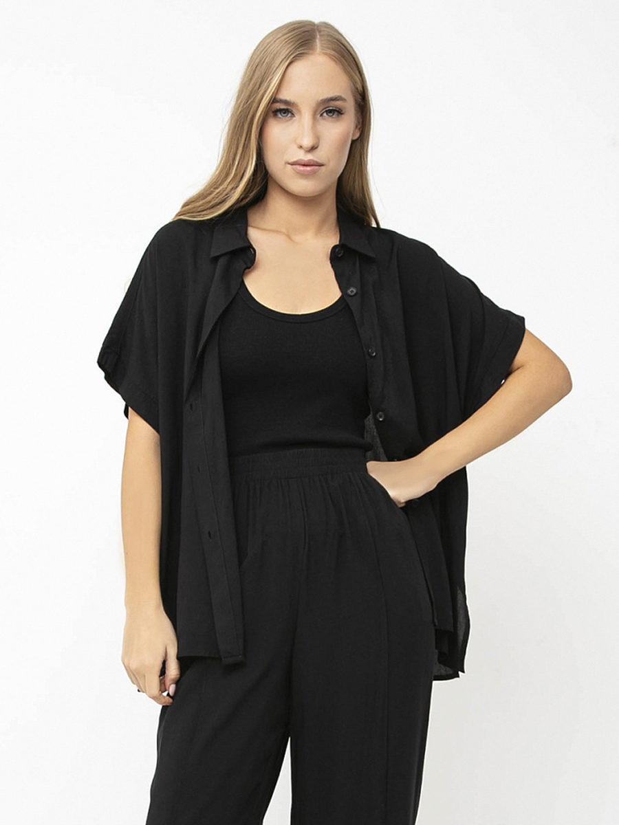 Рубашка летняя женская свободной посадки итальянского бренда FABRETTI выполнена из высококачественной вискозы. Классический воротник и застежка на пуговицах дополняют элегантный дизайн. Рукава короткие и имеют свободный покрой и слегка зауженные манжеты. Модель имеет прямой силуэт, не сковывает движений и прекрасно подходит как для повседневной носки, так и для создания более нарядного образа. Ткань приятная к телу, не вызывает раздражения и аллергических реакций.