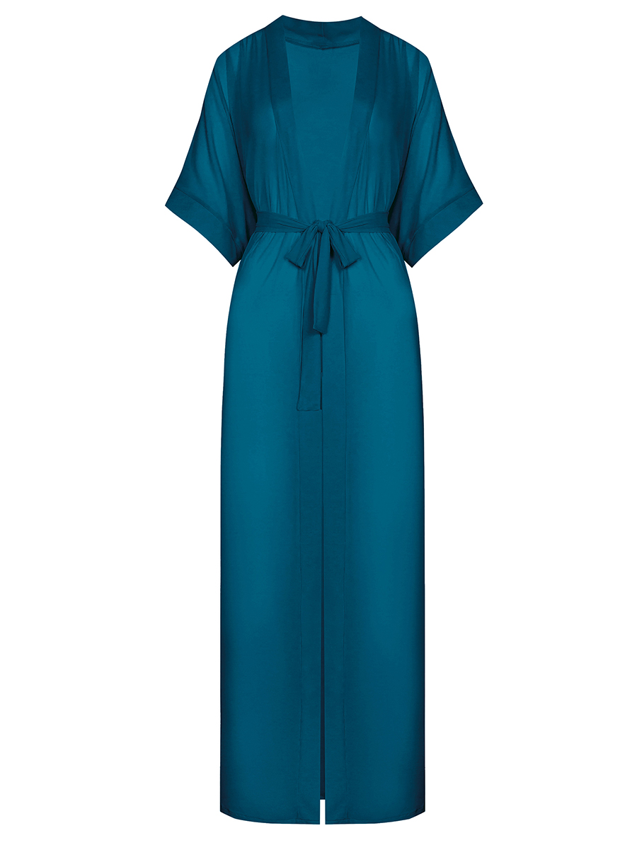 Летняя туника макси с коротким рукавом. Разрезы по бокам. Съемный завязывающийся пояс. Струящаяся воздушная полупрозрачная эластичная ткань.
