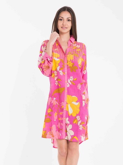 Летняя яркая туника прямого кроя на пуговицах с длинным рукавом. Выполнена из вискозной ткани, которая позволяет телу дышать