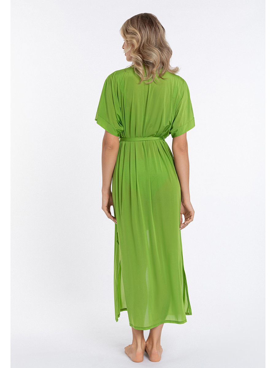 Летняя туника макси с коротким рукавом. Разрезы по бокам. Съемный завязывающийся пояс. Струящаяся воздушная полупрозрачная эластичная ткань.