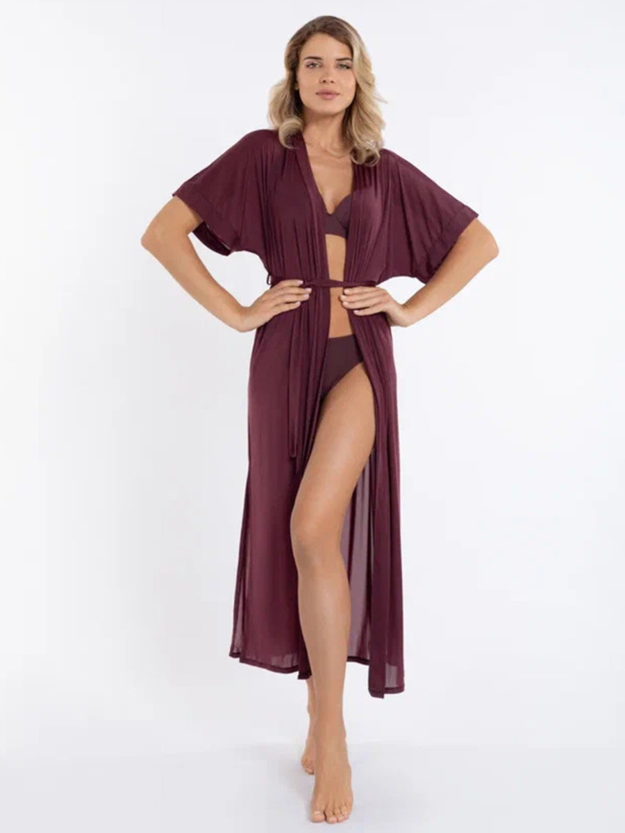 Летняя туника макси с коротким рукавом. Разрезы по бокам. Съемный завязывающийся пояс. Струящаяся воздушная полупрозрачная эластичная ткань.