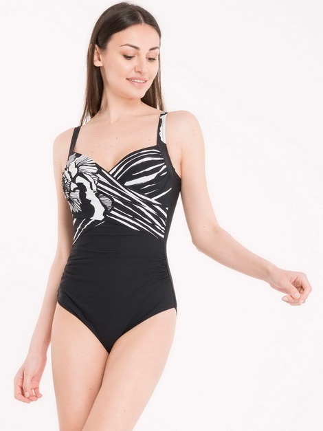 Совместный купальник с мягкой чашкой на кости, бретели регулируются. Спереди на утягивающей подкладке
