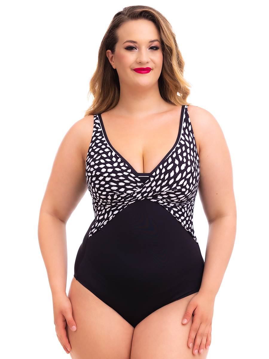 Купальник совместный с лифом в виде тонкого треугольника с усиленной поддержкой под грудью и утяжкой в области талии, бретели регулируются, спина открытая.